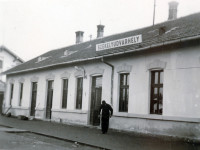 Csendélet a város nagyságához és rangjához méltatlan megjelenésű állomásépület előtt. A kép bal szélén egy romos állapotú mozdonyszín látható, mely valószínűleg a vonal építésének idejéből származik. A CFR tervezte nagyobb, a segesvárihoz hasonló indóház építését, ez azonban – akárcsak az 1888. március 15-én átadott Héjjasfalva – Székelyudvarhely zsákvonal Csíkszeredáig történő meghosszabbítása – máig nem valósult meg.