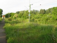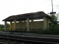 Az esőbeálló most jobban néz ki, a tető rendben van, de össze van firkálva. Mellette egy vízcsap is lehetett egykor, már nincs. Van egy pályatelefon csatlakozás is még a peronnál, óvatosan közelítsetek felé, mert darazsak tanyáznak benne, mikor kb. fél méterre voltam elkezdtek hangosan zümmögve kirajzani, azonnal hátráltam és nem követtek szerencsére.