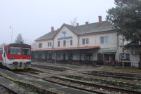 Aranyosmarót felvételi épülete a 810 491-es motorkocsival
