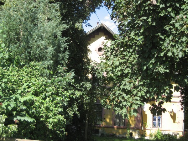 Az épület a település alsó határán kívül található az országhatár felé balra. Az épületet lombos fák takarják!