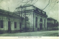 A pályaudvar régi, a Déli Vasút által épített felvételi épülete az Alkotás utca felől. Forrás: korabeli képeslap.