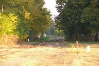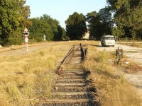 Fábiánsebestyén állomás bontása 2009 őszén. A megmaradt 2. vágány tengelyéből nézünk Újváros (Orosháza) felé.