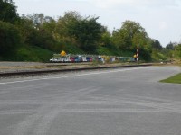 Az állomás felsőlászlói oldalán lévő vasúti átjáró Felsőpulya centruma felől nézve.