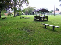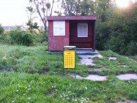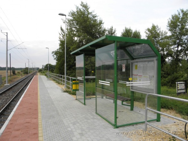Egy rozoga bódé és a tábla a megállóhely összes berendezése.A megállóhely forgalma nagyobb,mint az épülettel és peronnal is rendelkező Hanság-nagyerdő megállóhelyé.(Ott gyakorlatilag nincs személyforgalom)