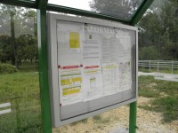 A megállóhely és a A Hansági-főcsatorna hídja között,a 689-690-es szelvényben lévő önműködő térközjelző a megállóhely felől nézve.