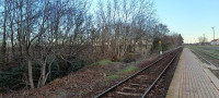 Itt megvan a kék tábla, a felvételi épület oldalsó ablakán betekintve látható.