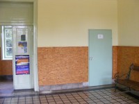 Az ajtón át a vágányokhoz juthatunk. A padló és a padok hamisítatlan várótermi hangulatot árasztanak.