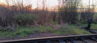 Az iparvágány kettéágazik, majd eltűnik a gazban. Maguk a sínek még megvannak-a kapuig biztosan. A szárító is működik.(mezőgazdasági raktár és géptelep) Háttérben egy szép nagy kombájn sárgállik...