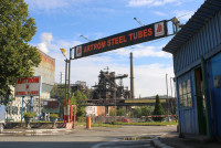 Az egykori resicai vasgyár területén ma az Artrom Steel Tubes nevű üzem működik. Háttérben a ma már üzemen kívül álló nagyolvasztó.