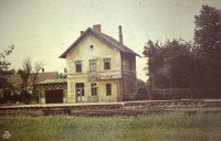 Megemlíteném, hogy ez nem a vasútállomás. Az egykori felvételi épületet már sok-sok éve elbontották. A képen az egykori gőzmozdonyoknak épített mellékvonali fűtőház látható.