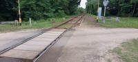 A megállóhelyen egy földút is keresztez, amit fénysorompóval fedeznek.