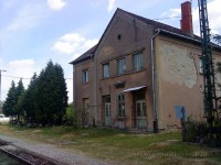A felvételi épület a bezárás után három évvel, a cserkész különvonat érkezése előtt két nappal. A környék rendezett volt, a füvet lekaszálták.