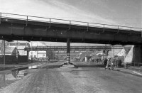 Közvágóhíd BHÉV állomás Soroksár felől, jobbra hátul, a régi helyén; a hídon a MÁV zimonyi fővonala; mögötte lévő hídon a Ferencváros–Dunapart, leghátsón az Összekötő vasút vonala vezet. Forrás: UVATERV–Fortenpan, http://index.hu/nagykep/2015/02/22/kivezeto_utak/