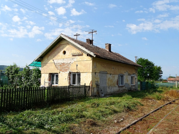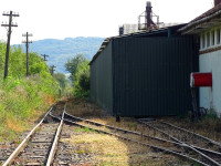 Az egykori raktárépület már nem létezik, csak a rámpája dacol a múló idővel. Ezen a rámpán, amit első pillantásra peronnak néztem, az egyik oldalán a kisvasutat, a másikon a települést ismertető információs táblát helyeztek el. A vonatok a második vágányra érkeznek és onnan is indulnak vissza.