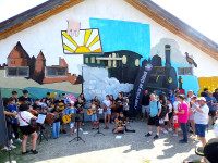 Az egykori rakodón látható információs tábla egyik oldala - természetesen csak román nyelven...