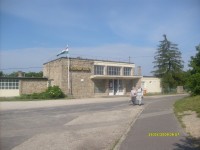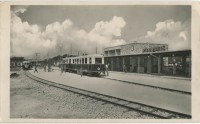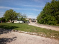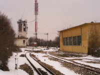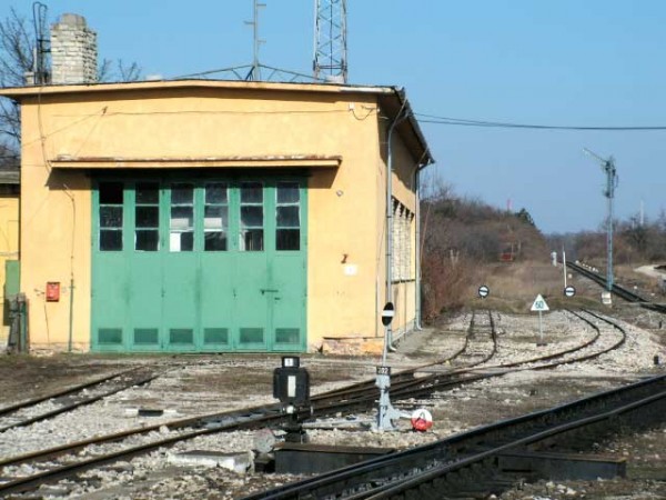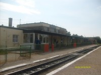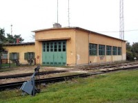 A kép közepén van egy idős hölgy, jobbra tőle pedig egy bekerített töltés sínekkel. Itt állt az Mk49 2006-os mozdony. Pár éve vitték el. Jelenleg a fűtőházban található megfosztva tető nélkül, felújítás alatt.
