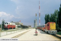 Mk45-2005-ös psz. mozdony és "frissen" érkezett szerelvénye körüljárás előtt az állomáson.