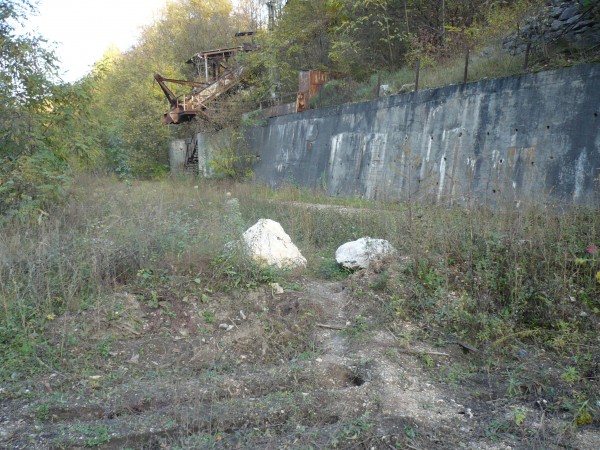 MEXIKÓVÖLGYI KŐBÁNYA. Idáig tartott a Miskolc Rendező Pu.-ból kiinduló szakasz. Ez volt a végállomás. 1990 környékén megszűnt. 3 vágányos állomását 2006 körül felszedték. Állomásépülete soha sem volt. Háttérben a kőcsúszda látható.