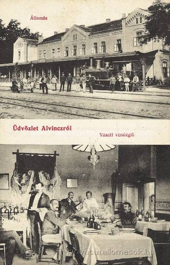 Alvincz. Állomás és vasúti vendéglő. Forrás: korabeli képeslap.