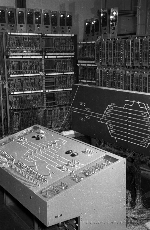 Hungária körút 126-128., Telefongyár. Aszód vasútállomás Integra rendszerű jelfogófüggéses, gyári próbához összeállított biztosítóberendezése.