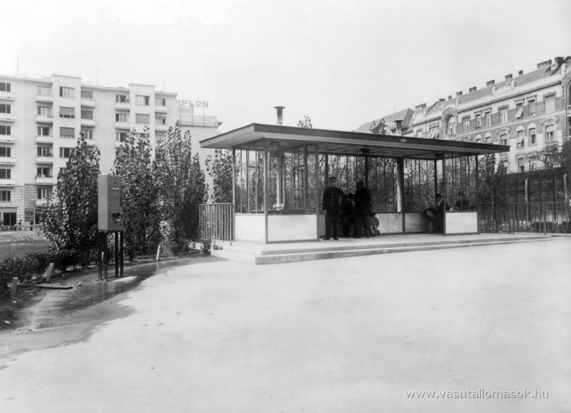 Horthy Miklós körtér, váróhelyiség a hurokvégállomás és gomba megépülte előtt, valószínűleg 1938-ban. Forrás: