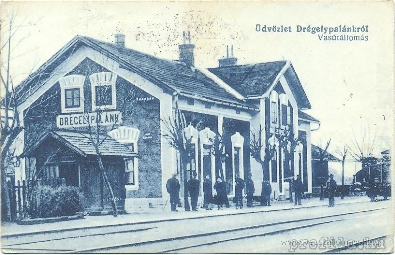 Drégelypalánk állomás felvételi épületének vágányok felőli képe egykor. Forrás: profila.hu korabeli képeslap.