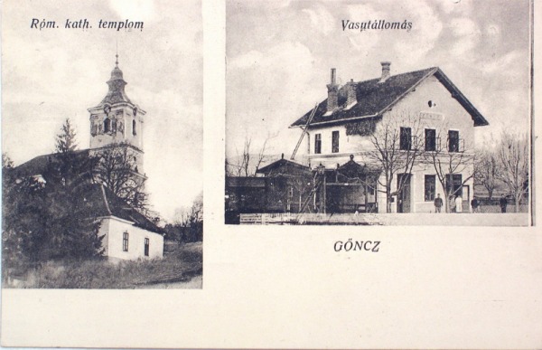 Gönc vasútállomás HÉV III.osztályú felvételi épülete látható a képeslap jobb oldali képén.
