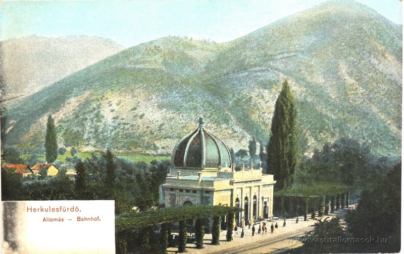 Herkulesfürdő.Állomás.Forrás:korabeli képeslap