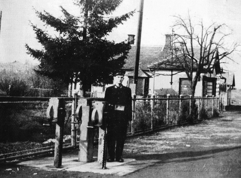 A sorompókezelői állványoknál László Sándor látható valamikor 1946 és 1987 között.