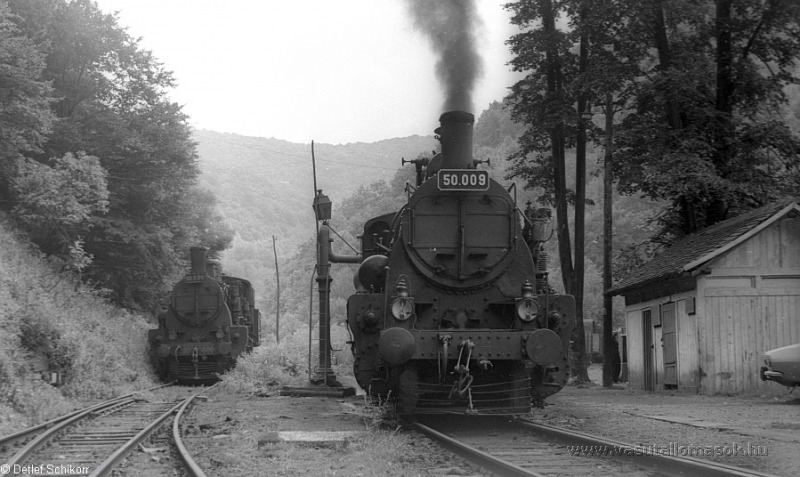 „CFR 50.009; 50.080 Lisava 9.8.1978” Oravica felől érkező vonat, jobbra egy Dacia szgk. áll a felv. ép. mellett. Forrás: Detlef Schikorr