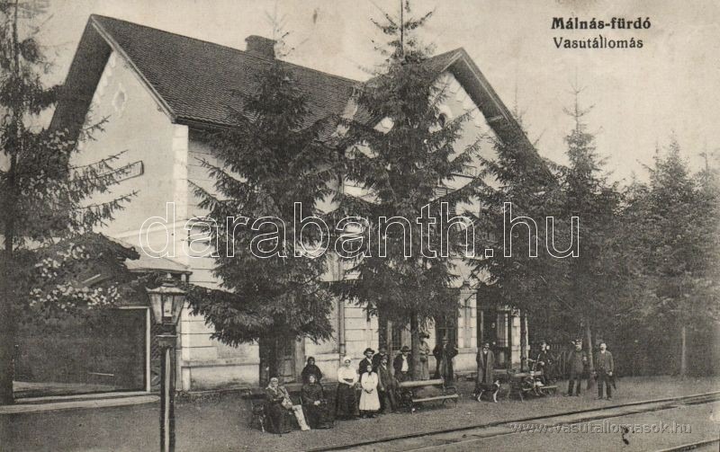 Málnás-fürdő. A vasútállomás vágányok felőli képe egykor. Forrás: darabanth.hu