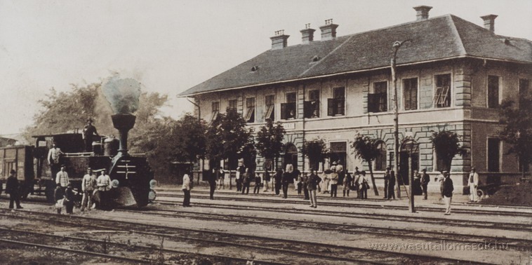 Nagybecskerek-Bégapart állomásépületét már bővített formájában láthatjuk ezen a régi fényképen.