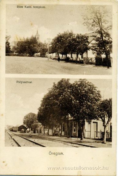 A kép sajnos nem túl jó minőségű, nehezen értelmezhető, ráadásul a lombok is takarnak, de azért valamennyit megmutat abból, milyen volt az állomás régen.