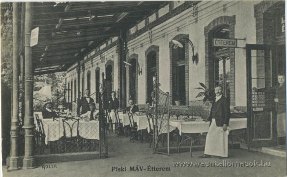 Piski. A vasútállomás étterme egy régi képeslapon. Forrás: hodobay.hu.