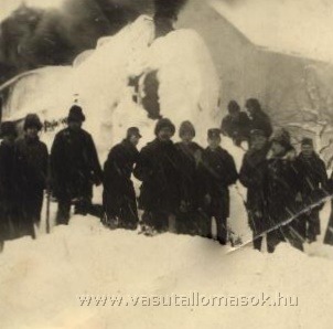 Hófúvásban elakadt 5061 számú vonat. A "képregény" 1. képe.