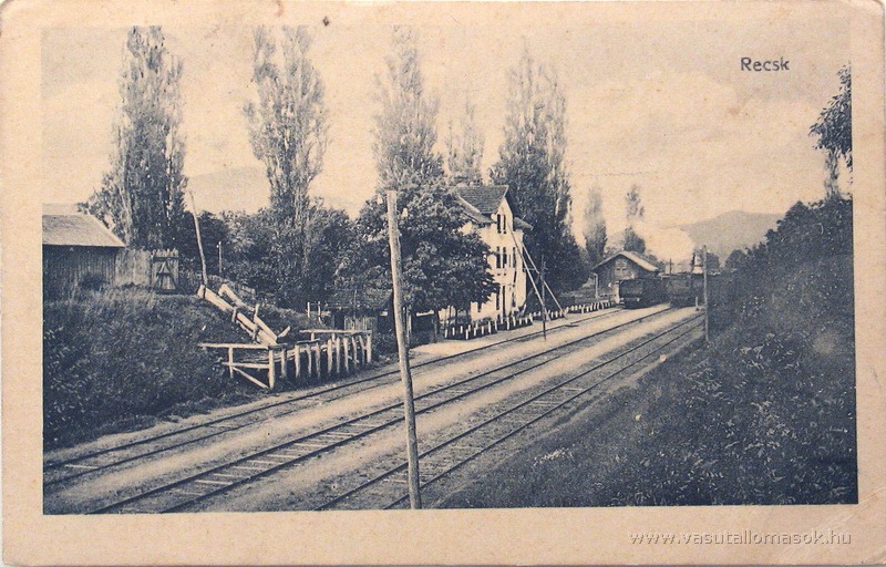 Az állomás felvételi épülete,és vágányai egykor.Forrás:korabeli képeslap