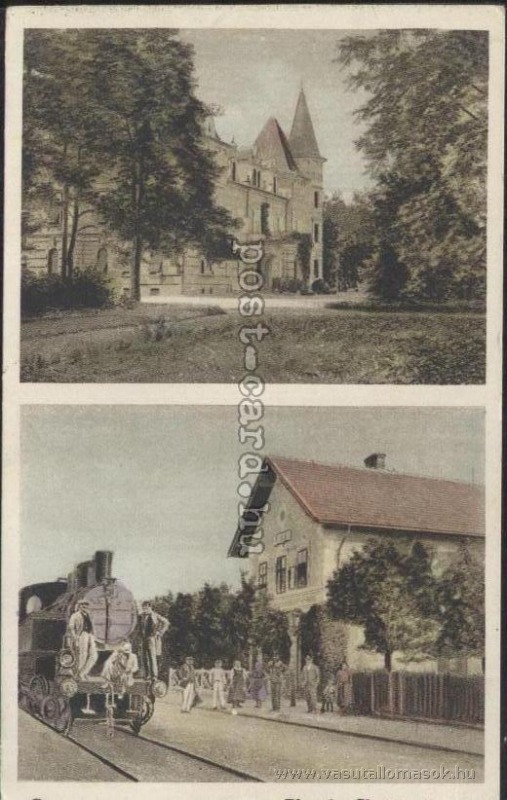 Rum vasútállomás látható a képeslap alsó képén.Forrás:post-card.hu