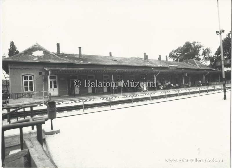 Siófok vasútállomása az átépítés közben: az aluljáró már kész, a magas peronok épülnek, az épület még a régi állapotában.
