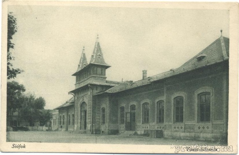 Siófok állomás utcafront felőli képe régen. Forrás: profila.hu korabeli képeslap.