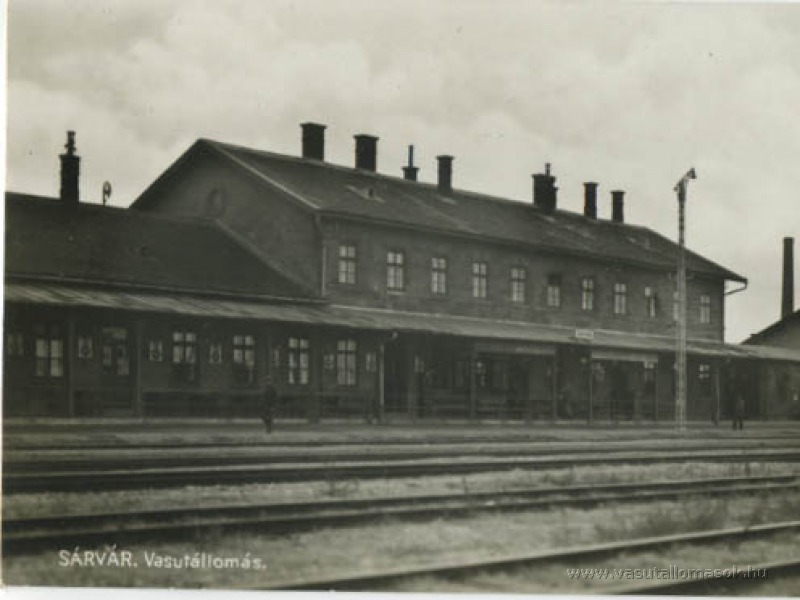 A felvételi épület a vágányok felől egy régi képeslapon.