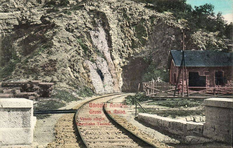 Mára eltűnt őrház a XIV. alagút és az Anina vagy Schlucht viadukt között, 1910 körül. Forrás: https://
