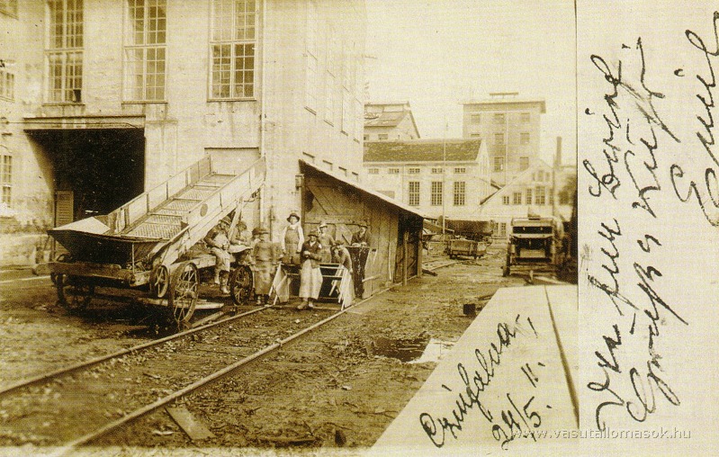 Vulkapordány állomásról 2,2 kilométer hosszú iparvágány vezetett a cinfalvi cukorgyárba.Forrás:korabeli képeslap