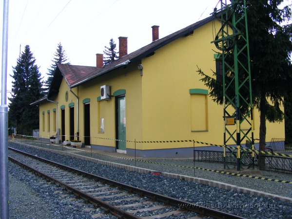 A felvételi épület az új I.sz. vágánnyal Bük felől nézve.