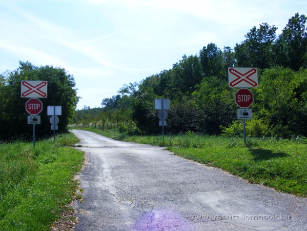 A megállóhelynél lévő vasúti átjáró a vasút túloldala felé nézve.