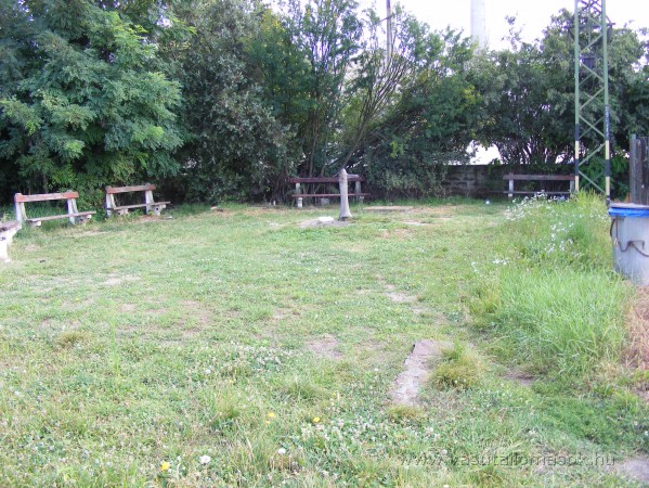 Padok, kút és kuka a várakozó utasok részére a kapcsolókert mellett