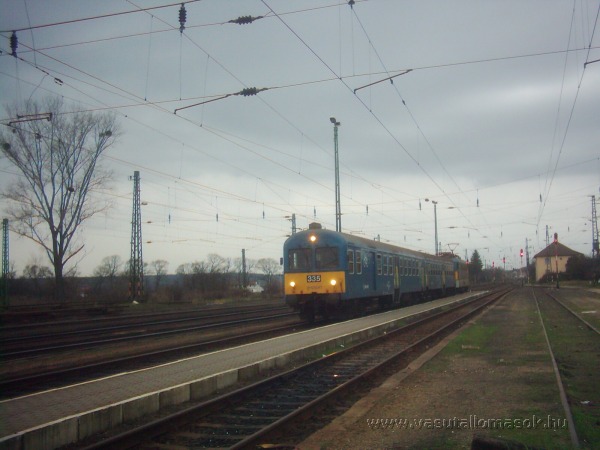 Vácrátót felől érkezik a vonat (V43 1157+bhv20-07 712+Bdt 335) a 77-es vonal utolsó üzemnapján, 2009. 12.12-n.