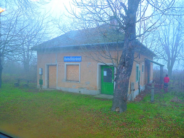 Belsőbáránd vasúti megállóhely a 38415-ös személyvonatból nézve, óriási ködbe burkolva.