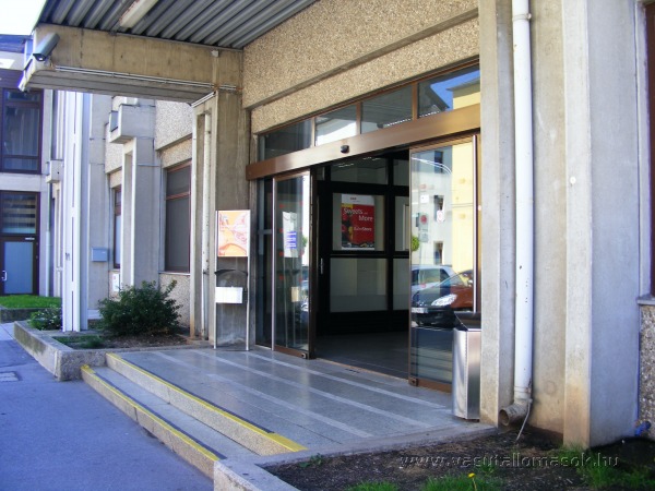 A felvételi épület utcafront felőli főbejárata.