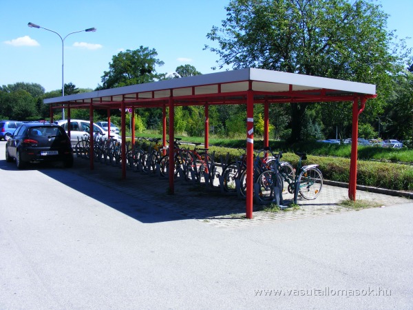 Az állomás túloldalán lévő fedett kerékpártároló.