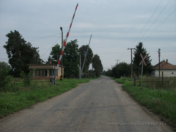 Teljes csapórudas sorompóval biztosított útátjáró a Lakitelek felőli oldalon.